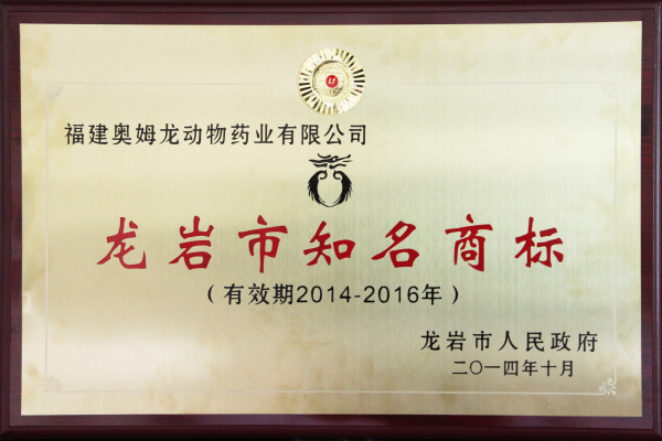 熱烈祝賀福建奧姆龍動物藥業(yè)有限公司分別被福建省工商行政管理局及新羅區(qū)工商局認定為 “福建省著名商標”及“龍巖市知名商標”,這是對奧姆龍公司營運多年來公眾認知度的肯定,是良好市場信譽度的體現。