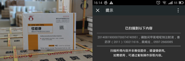 日前,我司接農(nóng)業(yè)部通知赴京參加“國家獸藥產(chǎn)品追溯信息系統(tǒng)擴(kuò)大試點(diǎn)工作”會議,成為全國首批試行獸藥二維碼監(jiān)管的108家獸藥生產(chǎn)企業(yè)之一。會議結(jié)束以后,我司迅速投入準(zhǔn)備工作中,組建專項(xiàng)小組,先后投入十幾萬元購置專業(yè)設(shè)備,改進(jìn)生產(chǎn)線;經(jīng)過幾個(gè)月的實(shí)踐,順利配合農(nóng)業(yè)部完成了獸藥二維碼追溯系統(tǒng)試點(diǎn)工作。目前我司已有多個(gè)批次的產(chǎn)品:奧噻林(阿莫西林可溶性粉)、蟲痢康(芬苯達(dá)唑粉)、弓感康(磺胺間甲氧嘧啶鈉注射液)與農(nóng)業(yè)部獸藥追溯系統(tǒng)完成匹配。