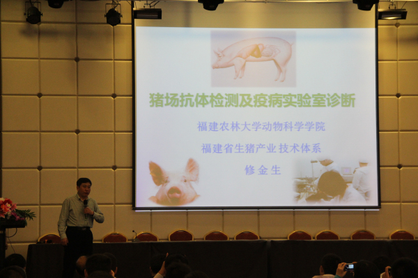 會議的主要內(nèi)容有:福建農(nóng)林大學(xué)動科院修金生教授為大家?guī)碇黝}為《豬場抗體檢測及疫病實驗室診斷》的報告、福建農(nóng)林大學(xué)動科院教授俞道進老師的《換個角度看豬病》、威爾潞威動物保健品有限公司梁彥明董事長帶來的《后抗生素時代與益生素》,提倡畜牧行業(yè)合理使用抗生素等等。奧姆龍生物工程郭金權(quán)博士也精心準備了題為《母豬產(chǎn)程延長的發(fā)生機制及處理方案》與在場的畜牧業(yè)同行們一起交流學(xué)習(xí)。