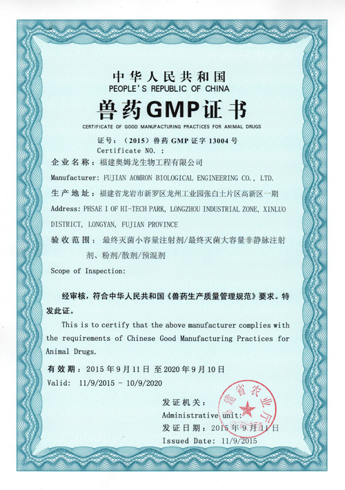 2015年7月22日,來自省農(nóng)業(yè)廳獸藥主管部門的GMP驗(yàn)收專家組陳鋒一行3人,蒞臨我司開展GMP復(fù)驗(yàn)工作。專家組對(duì)我公司機(jī)構(gòu)與人員、廠房與設(shè)施、設(shè)備、物料、衛(wèi)生、生產(chǎn)管理、質(zhì)量管理、文件、驗(yàn)證、產(chǎn)品銷售與收回、自檢等多個(gè)項(xiàng)目逐項(xiàng)進(jìn)行了全面、細(xì)致的檢查和考核。專家組經(jīng)過認(rèn)真考評(píng),得出綜合評(píng)價(jià)意見,對(duì)我司GMP建設(shè)給予了高度評(píng)價(jià)。總結(jié)會(huì)上,農(nóng)業(yè)部專家組宣布檢查結(jié)果,我司順利通過GMP復(fù)驗(yàn)。