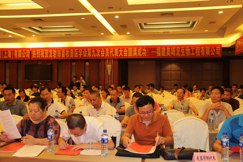 9月24日,由龍巖市畜牧獸醫(yī)學會主辦,龍巖學院生命科學院、福建奧姆龍生物工程有限公司、福建中農(nóng)牧生物藥業(yè)有限公司等協(xié)辦的龍巖市畜牧獸醫(yī)學會第九次會員代表大會暨學術報告會在閩西賓館隆重召開。本次大會以“生態(tài)、安全、提質(zhì)、增效”為主題,來自龍巖市畜牧獸醫(yī)學會、畜牧獸醫(yī)行政、福建農(nóng)林大學、龍巖學院及企業(yè)界的會員代表參加了本次會議。