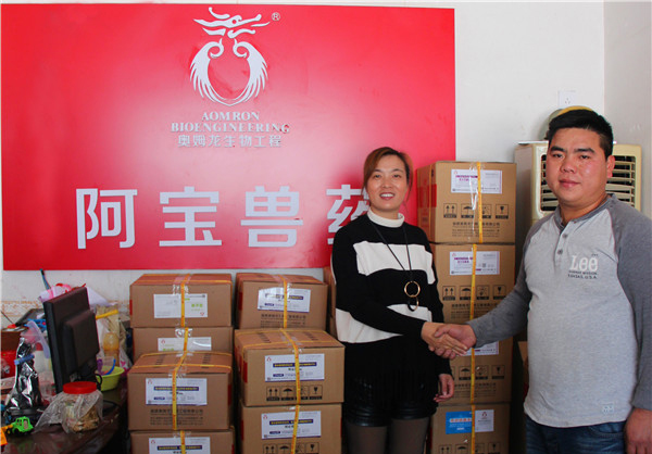 2017年3月27日上午,我司銷售部人員將滿滿一車產(chǎn)品送至奧姆龍公司合作加盟店——阿寶獸藥!