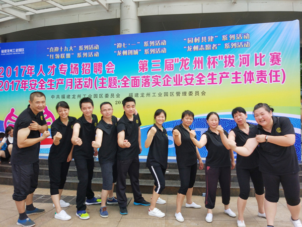 為豐富全體員工的精神文化生活,促進在職員工之間的交流,發(fā)揚團隊精神,增強凝聚力,公司于2017年6月29日參加了福建龍州工業(yè)園區(qū)舉辦的第三屆“龍州杯”拔河比賽。