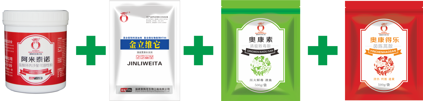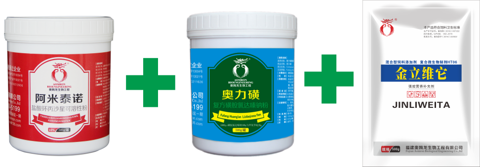 1.阿米泰諾1000g+奧力磺2000g(或奧貝奇500g)+金立維它500g