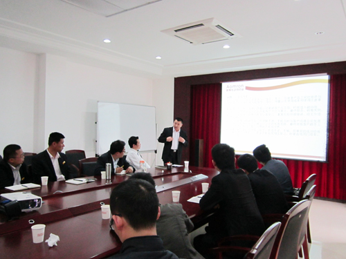 會議上 董事長林振雁講解《2012年——奧姆龍發(fā)展的營銷戰(zhàn)略工作綱要》
