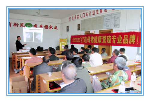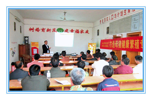 2012年4月18日,為了有效的治療當地發(fā)生的副豬桿菌和皮炎腎病等疾病,公司技術總監(jiān)郭金權博士深入武平縣中堡鎮(zhèn)一線,向養(yǎng)殖戶講解在如何合正確、有效的使用產品。