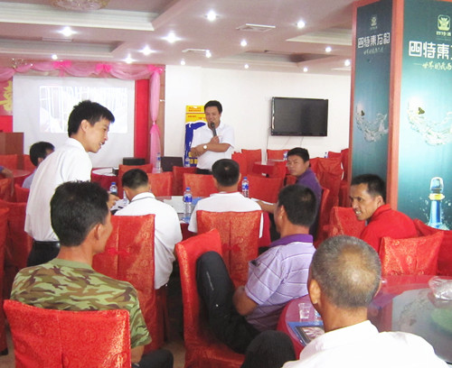 會議一開始,技術(shù)總監(jiān)郭金權(quán)現(xiàn)場回答養(yǎng)殖戶的問題,進(jìn)行一對一的交流,為養(yǎng)殖戶排憂解惑。