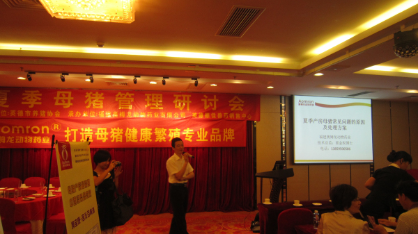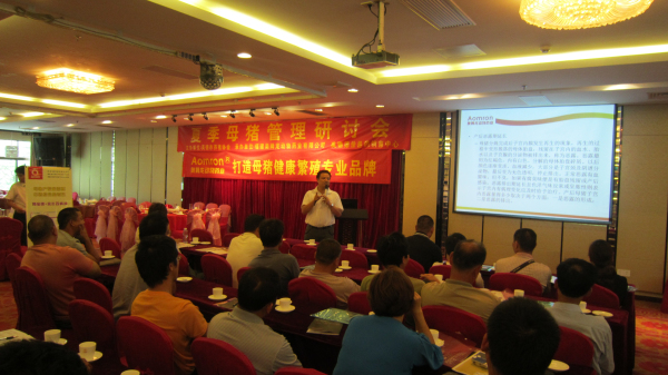 2013年6月14日,公司在廣東英德召開“夏季母豬管理研討會”暨公司技術(shù)推廣會,會議在董事長林振雁的主持下拉開了序幕。緊接著公司技術(shù)部總監(jiān)郭金權(quán)老師針對“夏季產(chǎn)房母豬常見問題的原因及處理方案”進(jìn)行了詳細(xì)的解說,會議現(xiàn)場座無虛席,互動氛圍熱烈。