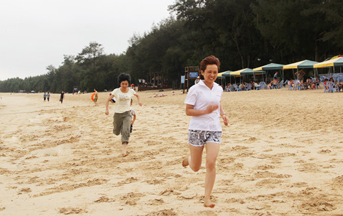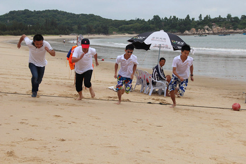 圖4 沙灘上,女子組財(cái)務(wù)部陳琴順一馬當(dāng)先