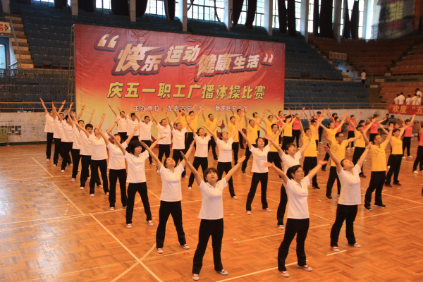 2013年4月27日星期六,為了進(jìn)一步推進(jìn)全民體育運(yùn)動(dòng),龍巖市總工會(huì)與新羅區(qū)總工會(huì)組織二十多支代表隊(duì)參加第九套廣播體操比賽。經(jīng)過(guò)連續(xù)幾周的加強(qiáng)訓(xùn)練,我公司的二十多名員工身著統(tǒng)一的運(yùn)動(dòng)服,邁著矯健的步伐,和著鏗鏘的口號(hào)進(jìn)入賽場(chǎng)。比賽現(xiàn)場(chǎng),各代表隊(duì)隊(duì)員精神抖擻,整裝待發(fā)。廣播的音樂(lè)響起,隊(duì)員們踏著整齊的節(jié)拍,動(dòng)作標(biāo)準(zhǔn)流暢,一展奧姆龍人飽滿的精神和健康的體魄。