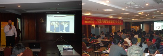 高安是養(yǎng)豬大市,全市能繁母豬存欄數(shù)在十萬頭以上,居江西省市級單位首位。本次會議正是以“打造母豬繁殖障礙專業(yè)品牌”為主題,公司技術(shù)部總監(jiān)郭金權(quán)博士專門針對《母豬繁殖障礙之子宮內(nèi)膜炎的防治》作了精彩的技術(shù)推廣,因地制宜地針對高安市當(dāng)?shù)刎i病防控提供對策及治療方案。以現(xiàn)場互動的溝通方式使客戶更全面、直觀的認識到奧姆龍公司產(chǎn)品的特性、療效和正確使用方法。