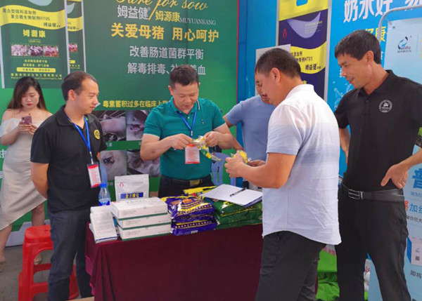 公司技術(shù)部老師徐見光為前來參觀的客戶提供了專業(yè)的技術(shù)咨詢,并為養(yǎng)殖戶提供了眾多高效實用的產(chǎn)品使用方案??蛻魧镜哪肛i系列產(chǎn)品和微生態(tài)制劑產(chǎn)品產(chǎn)生了濃厚的興趣,并給予了高度的評價。