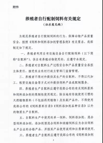 農(nóng)業(yè)農(nóng)村部畜牧獸醫(yī)局關(guān)于《養(yǎng)殖者自行配制飼料有關(guān)規(guī)定》公開征求意見的通知