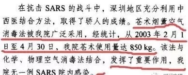 下面是一篇學(xué)術(shù)論文的截圖,該論文發(fā)表于2004年2月的《深圳中西醫(yī)結(jié)合雜志》上?!皩W(xué)術(shù)論文”你懂得,絕不是自媒體,都關(guān)系每個論文作者的學(xué)術(shù)前途。造假的人,都會受到懲罰!文章中提到了“北大深圳醫(yī)院”在非典期間真實運用蒼術(shù)消毒的“實操”!3個月,用了850公斤蒼術(shù),該院非典期間“無一例院內(nèi)感染”!