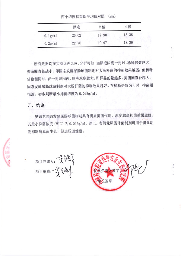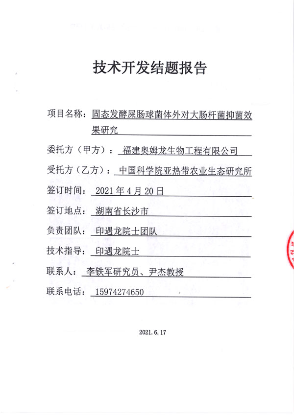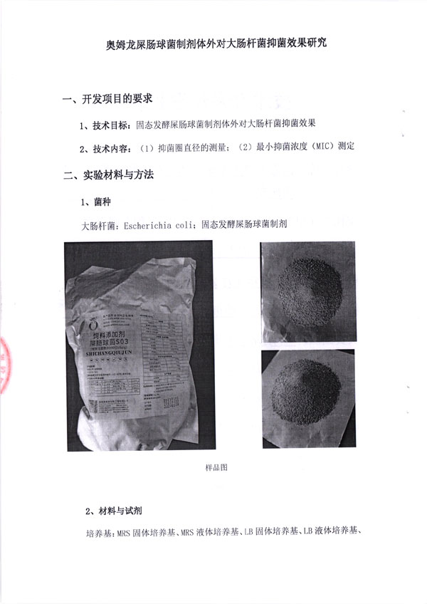 鑒于屎腸球菌的抑菌作用,我司于2021年4月與中國科學院亞熱帶農(nóng)業(yè)生態(tài)研究所簽訂協(xié)議,對我司生產(chǎn)的固態(tài)發(fā)酵屎腸球菌體外對大腸桿菌抑菌效果進行研究。