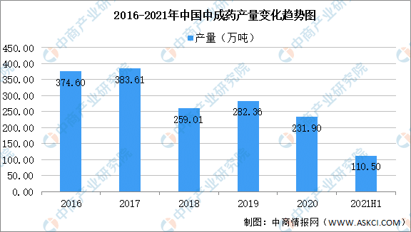 中成藥是以中藥材為原料,在中醫(yī)藥理論指導下,為了預防及治療疾病的需要,按規(guī)定的處方和制劑工藝將其加工制成一定劑型的中藥制品,是經(jīng)國家藥品監(jiān)督管理部門批準的商品化的一類中藥制劑。數(shù)據(jù)顯示,2021年1-2月我國中成藥產(chǎn)量110.5萬噸,同比增長10.5%。