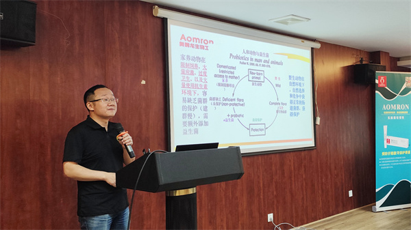 專業(yè)分享環(huán)節(jié),兩位專家?guī)?lái) “技術(shù)干貨”。許衛(wèi)華博士以《乳酸腸球菌在畜禽養(yǎng)殖中的運(yùn)用》為題,結(jié)合學(xué)術(shù)與實(shí)踐,講解該菌的特性、腸道健康作用及應(yīng)用效果,用數(shù)據(jù)案例讓養(yǎng)殖戶直觀了解其在改善消化、增強(qiáng)免疫力等方面的優(yōu)勢(shì)。