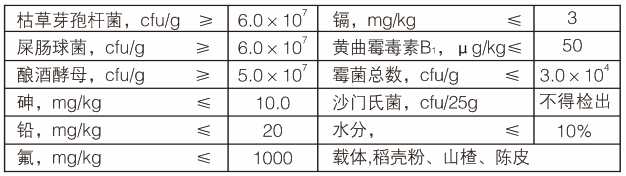 【原料組成】枯草芽孢桿菌、屎腸球菌、釀酒酵母、載體稻殼粉、山楂、陳皮