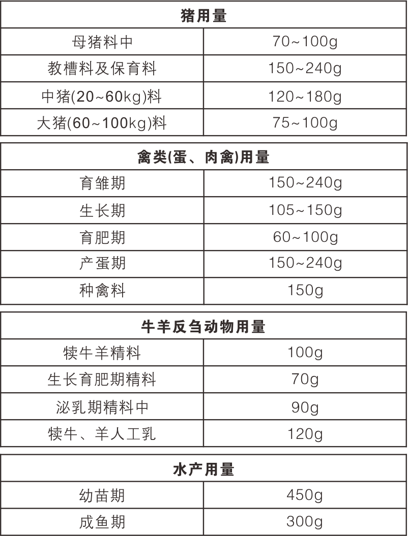 【注意事項(xiàng)】(1)拌料時(shí)需先與少量飼料進(jìn)行預(yù)混合后,再 添加到大料中進(jìn)行混合均勻。