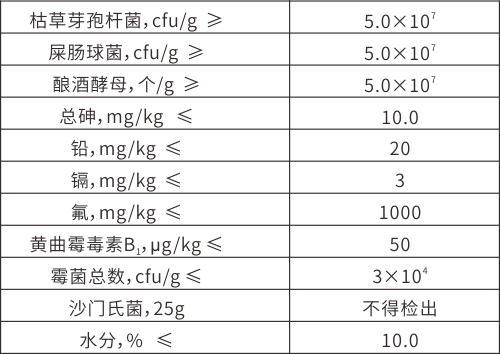 【原料組成】枯草芽孢桿菌、屎腸球菌、釀酒酵母、載體豆粕